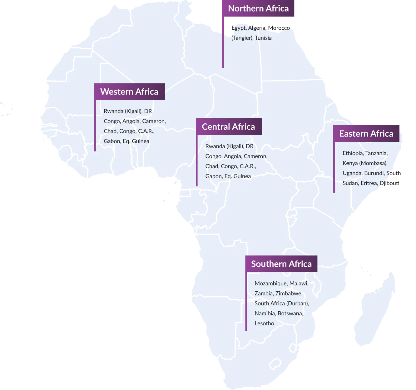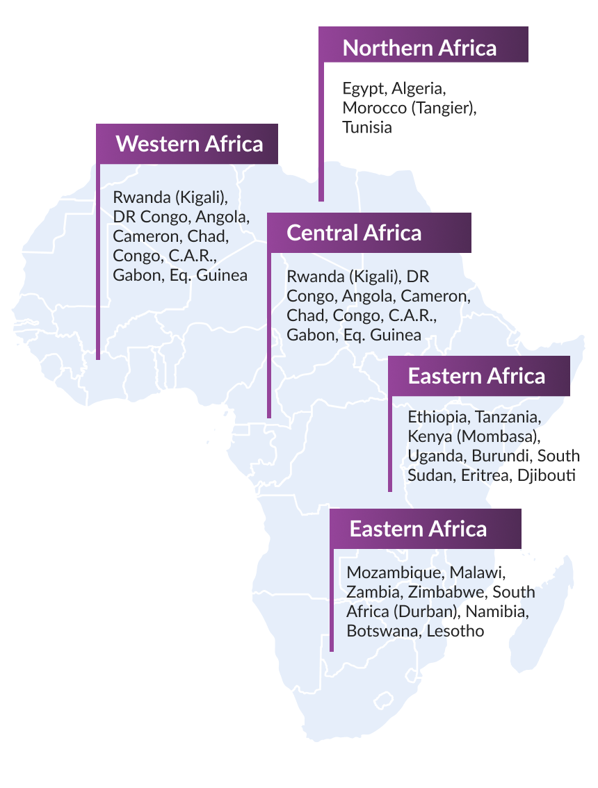 Mombasa, Djibouti, Kigali, Durban & Tangier Well connected to Dubai. Road, Rail, Sea connectivity to the landlocked & neighboring countries